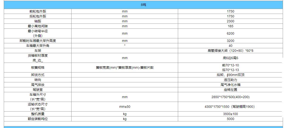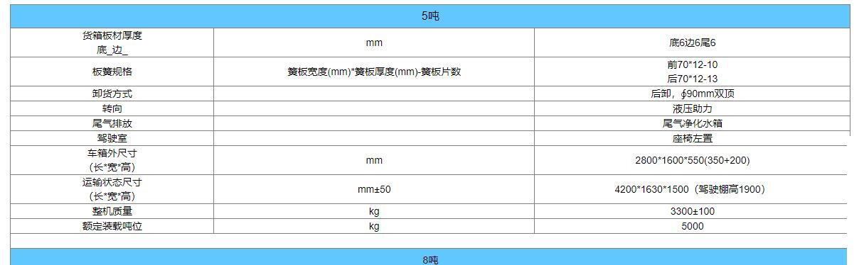 載重分别有3吨、5吨、8吨,客户可根据自己实际需要选装购买。